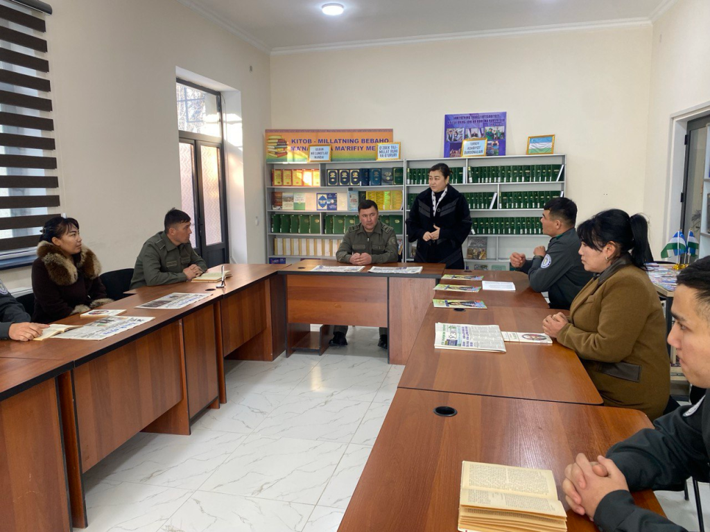 2026-yil 14-yanvar kuni Mirzaobod tuman a borot-kutubxona markazida 14-yanvar — “Vatan himoyachilari kuni” hamda O‘zbekiston Respublikasi Qurolli Kuchlari tashkil topganining 34 yilligi munosabati bilan davra suhbati bo’lib o’tdi. Tadbirida Respublika Ma’naviyat va ma’rifat markazi tuman bo’limi mutaxassislari va tuman Mudofaa bo’limi harbiy xizmatchilari hamda TAKM xodimlari ishtirok etishdi. Tadbir davomida so‘zga chiqqan RMMM tuman bo’limi mutaxassisi G. Xolmuradova barchani ushbu qutlug‘ sana bilan samimiy muborakbod etdi. Mudofaa bo’limi mutaxassislari bayram tadbirlari borasida so’zlab berishdi.