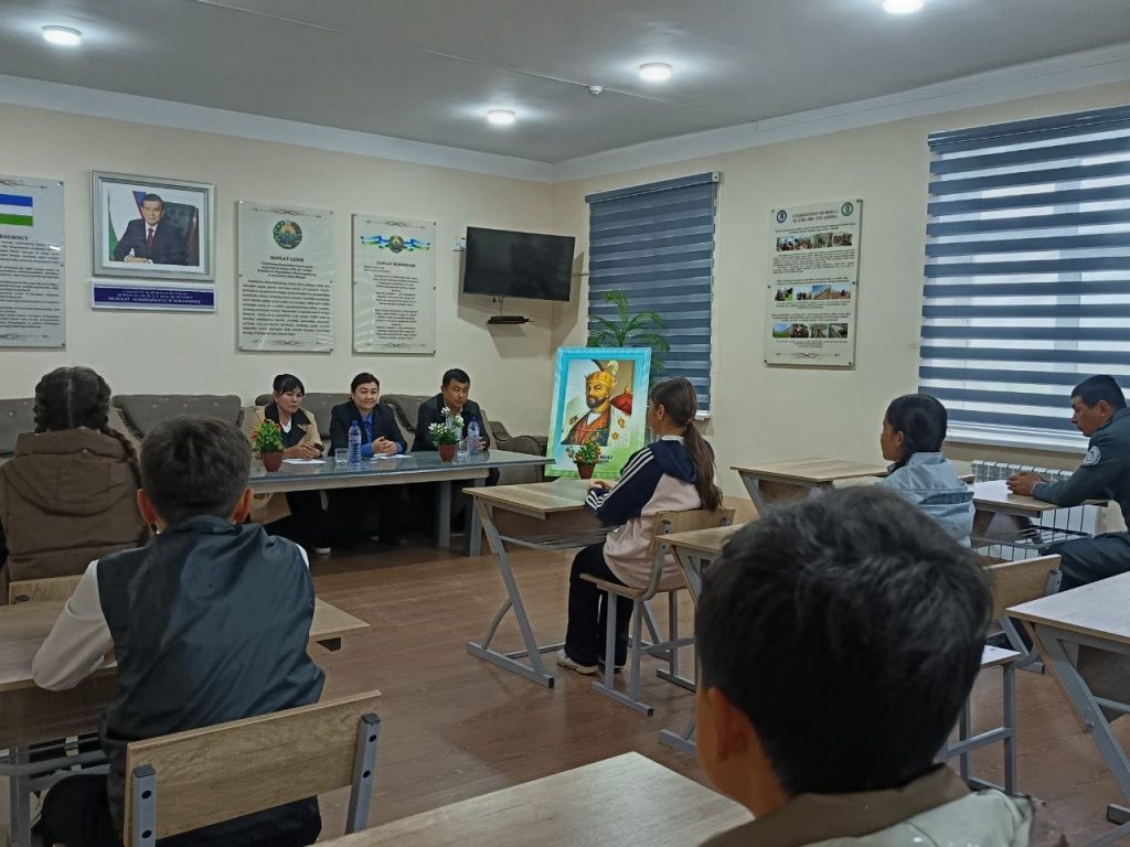 Temuriylar davri tarixini o‘rganish va ilmiy natijalarni keng targ‘ib etish bo‘yicha 2030 yilgacha mo‘ljallangan “Yo‘l xaritasi”ning 24-26- bandlarini amalga oshrish bo‘yicha Mirzaobod TAKMning “Chora-tadbirlar rejasi” ijrosini ta’minlash maqsadida joriy yilning 7-aprel kuni Respublika Ma’naviyat va ma’rifat markazi tuman bo‘limi bilan hamkorlikda buyuk Sohibqiron Amir Temur tavalludining 690 yilligiga bag‘shlahgan “Temuriylar renessansi” asoschisi” mavzusida davra suhbati tashkil etildi. Buyuk davlat arbobi va sarkarda Amir Temurning “Temuriylar renessansi” asoschisi sifatida qoldirgan merosini keng o‘rganish va targ‘ib qilish maqsadida o‘tkazilgan ushbu tadbirda 19- maktabnin yuqori sinf o‘quvchilari ishtirok etishdi.